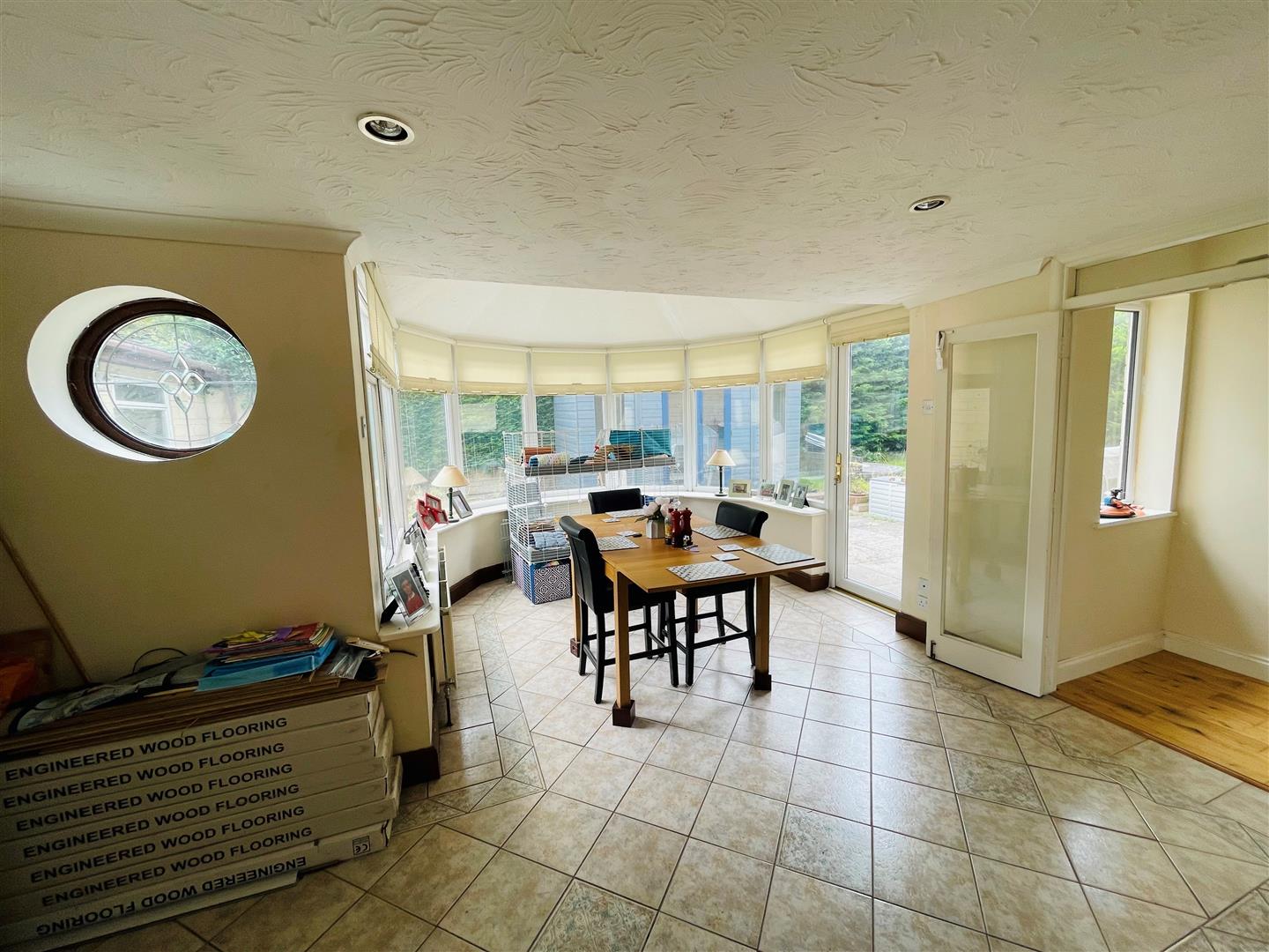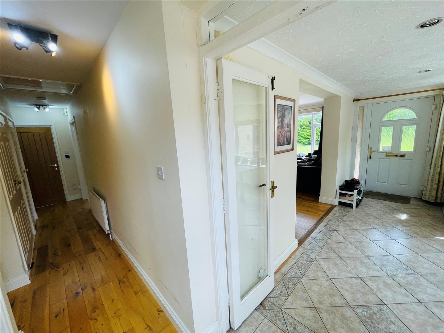With a double glazed decorative porthole window and further double glazed double doors, radiator, an opening leading to the inner hall and a further opening through to: