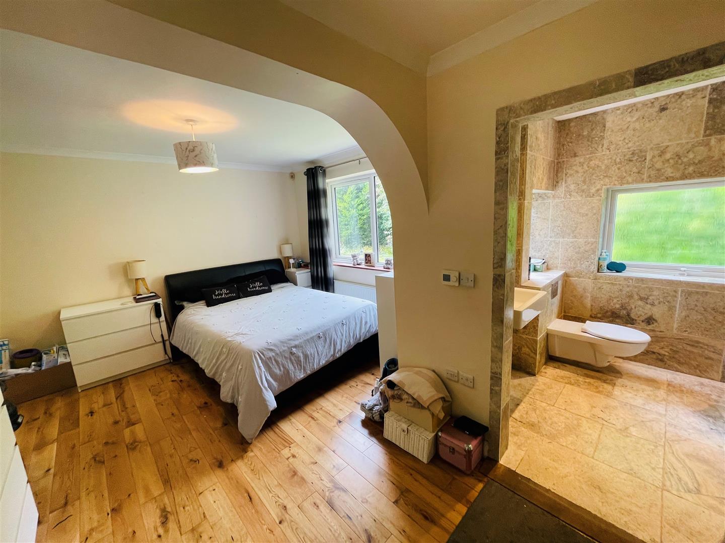 Two obscure double glazed windows. A fully tiled wet room with a suite comprising a low level W.C, wash hand basin, shower, heated towel rail, recessed downlighters, underfloor heating.
