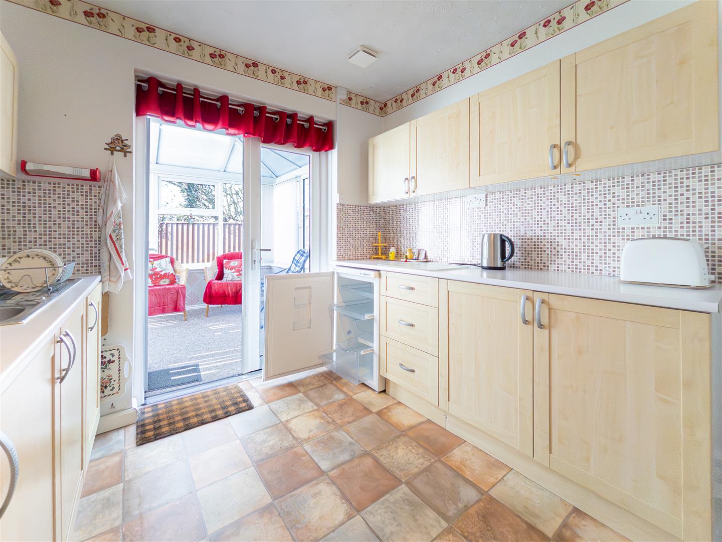 Double glazed conservatory, radiator, and double glazed door opening onto the garden.