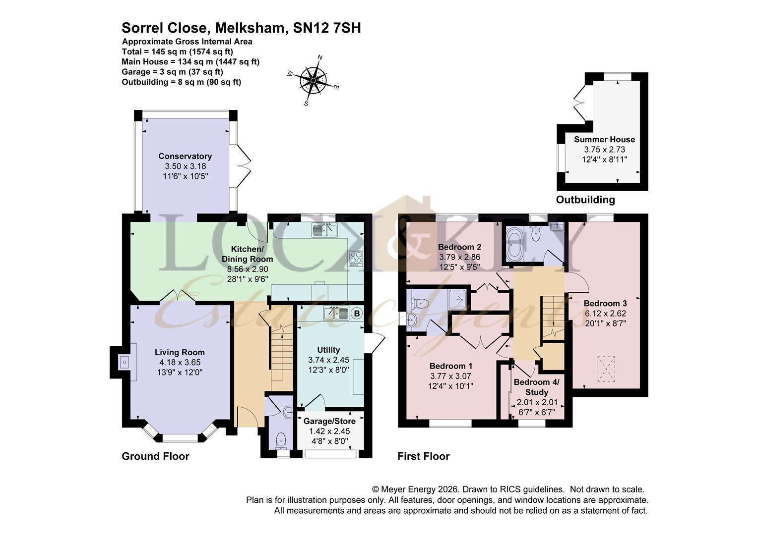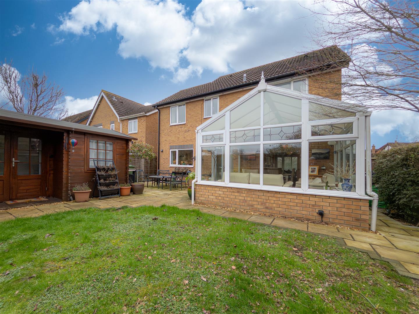Lock and Key independent esatate agents are pleased to offer this attractive, spacious and truly immaculate four bed detached property built by Lovell Homes situated tucked away in a favoured cul-de-sac with a pleasant green aspect in front within a level walk to the town. The accommodation is arranged over two floors and comprises a welcoming entrance hall, cloakroom, bay living room and log burner fire, opening into a beautiful open plan kitchen / dining room and a lovely conservatory looking out to the private rear garden. To the first floor are four bedrooms an en-suite and a lovely family bathroom. Externally there is an enclosed rear garden, summerhouse, side access, allowing ample parking to the front and a garage with roiller door ( partly as storage and also a useful utility and personal door to side ). The property further benefits from double glazing and gas heating. Viewing is strongly recomended. No Onward Chain.