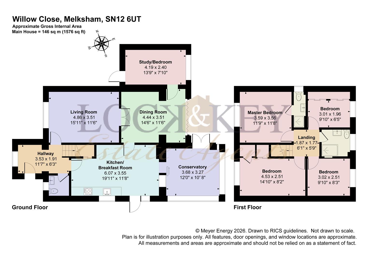 In a favoured cul-de-sac, convenient to amenities, area, the property lies within easy access to the town centre of Melksham where facilities include a lovely campus with swimming pool/fitness centre, library and bus services to surrounding towns. Neighbouring towns include Corsham, Calne, Bradford on Avon, Trowbridge, Devizes and Chippenham with the latter having the benefit of main line rail services. The city of Bath with its many facilities lies some ten miles distant and access to the M4 at junction 17 lies three miles north of Chippenham.