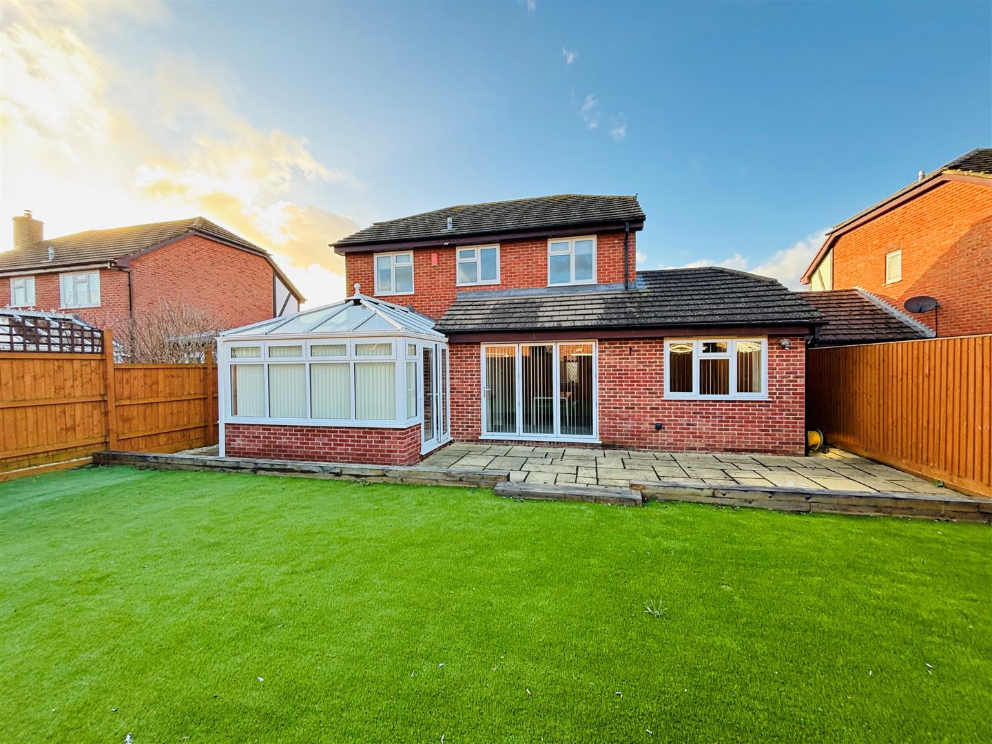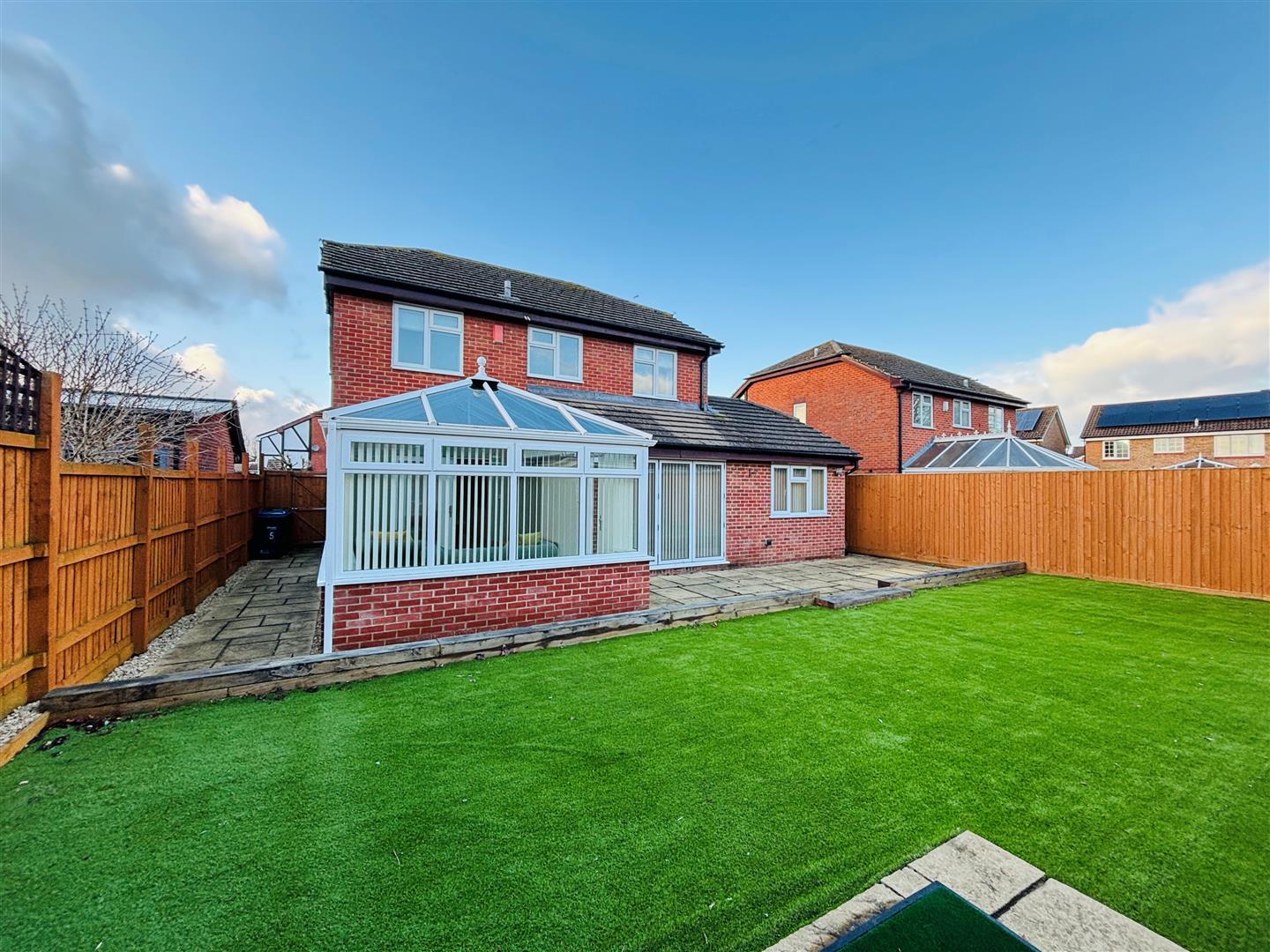 Lock and Key independent estate agents are pleased to offer this impressive, extended and therefore spacious 4 / 5 bed detached property sitauted tucked away in a small favoured cul-de-sac within a level walk into town and where you can walk around to the new campus or nature trails on offer. Based on two floors the accomoodation is (1576 st ft) and comprises of welcoming entrance hall, cloakroom, lovely open living room which flows through to the decent size dining room which has Bi-folding doors to the garden, door into the useful study / bedroom 5 and this gives access into the garage. There is a superb modern fitted kitchen / dining room with plenty of storage cupboards, integrated dishwasher & washing machine, Belfast sink with tap and space for range cooker along with space for breakfast table, this then gives access into the conservatory. Upstairs there are four bedrooms, an en-suite and a modern tiled wet room / shower room. Additional features include double galzing and gas heating. Externally there is drive parking, garage, side access to the fully enclosed rear garden.