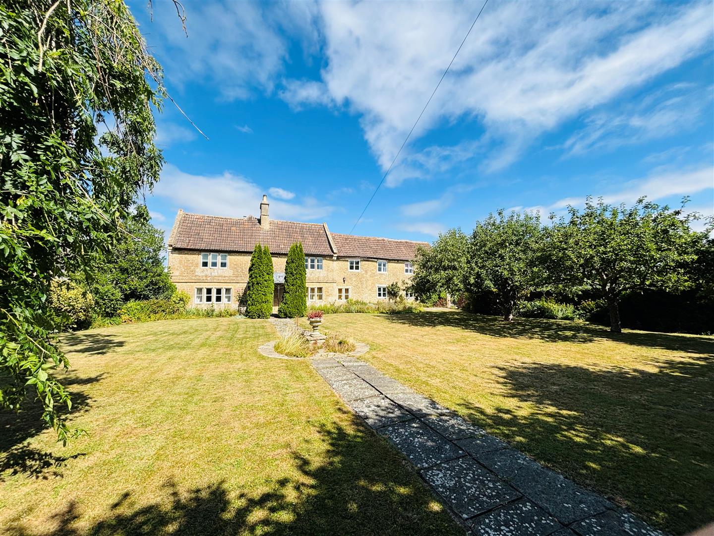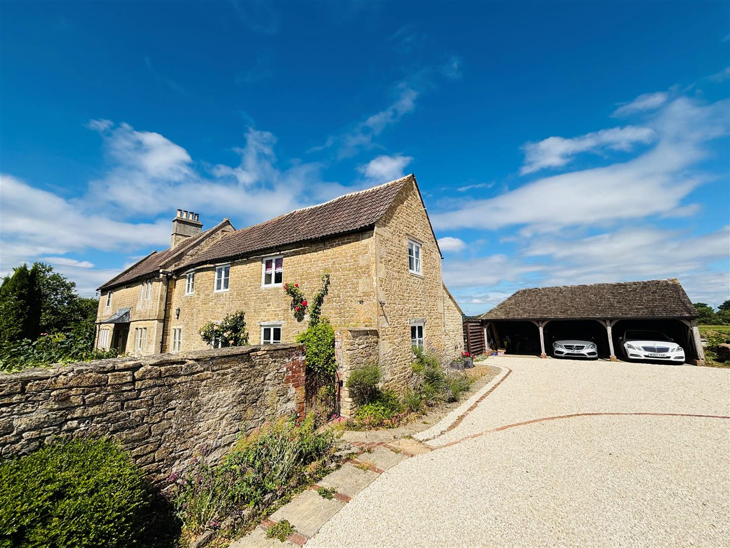 Main House – Internally is 4400 sp ft, there is an abundance of character features, with exposed stone walling, beams, a stone and open fireplaces, recessed walling, lovely deep window seating, beautiful staircases to name a few and space with good living proportions throughout to include, welcoming hallways, drawing room, dining room, large kitchen / dining room, a light & airy garden room, useful utility and cloaks, another boot room/cloakroom and a further family room. There are two staircases on either end, on the first floor secondary staircase is two bedrooms and an en-suite, and from the other main staircase are three bedrooms, an en-suite and family shower room. A further staircase will take you to the second floor where there is another attic bedroom (L shaped) with sloping ceilings, to included a useful useful store room area and an en-suite bathroom. Externally at the front is a most attractive walled garden with wrought-iron gates, shrub boarders, pollarded Limes and a Weeping Ash. The garden looks out across the adjacent open countryside and at the rear there are further garden areas with log store, former stable all backing onto farmland. Viewing is strongly recommended. No Chain.