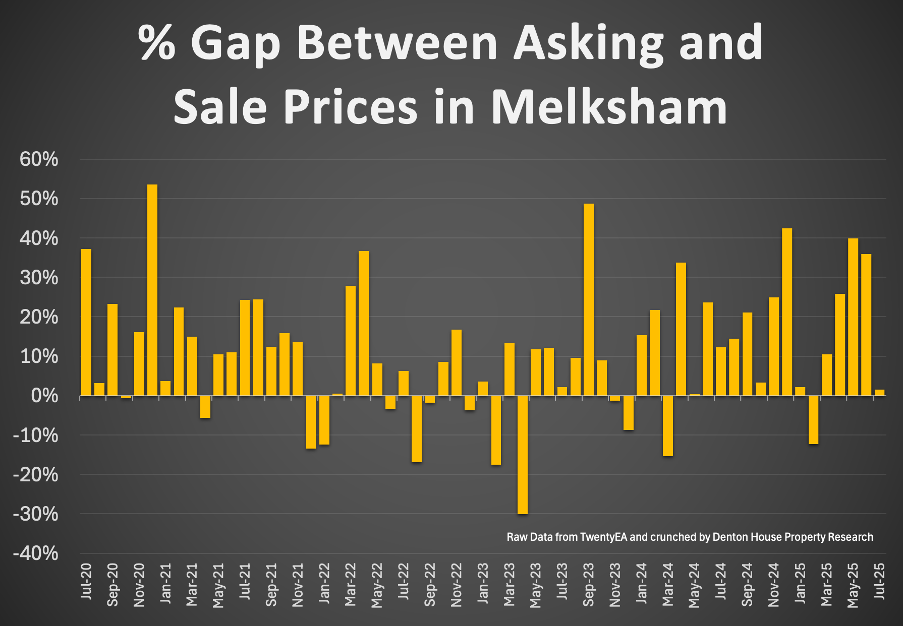 And no, this isn’t about a property crash or Melksham sellers taking a 13% or more hit on their asking prices. This is about what sells versus what sits on the market.